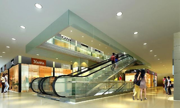 電梯扶手兩側適當的燈光可以引導客戶行走,可采用暗藏led熒光燈對扶手垂直面玻璃照明,給人安全感,并起到裝飾的作用。在電梯扶手樓梯底部嵌裝led天花燈,對下一層樓梯進行基礎照明。在電梯與電梯之間的轉折空間,是顧客流動量相對大的地方,也是展示本樓層商品信息的區域,可以采用亮度較高的金鹵筒燈及格柵射燈進行重點照明。