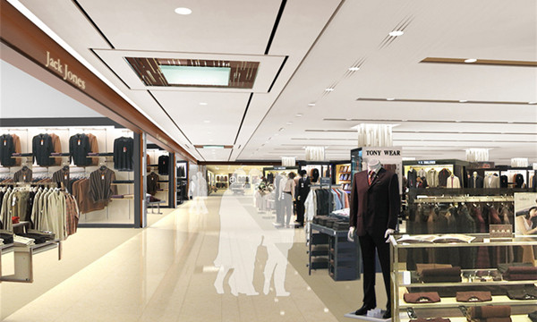 各個售貨專區的基礎照明是大型商場整體照明的重要組成部分,也是加深顧客整體印象、刻畫商品特征的基礎照明部分。售貨專區空間照明允許有自己的個性,但不可以與商場整體照明環境相沖突,采用遮光性不顯眼的燈具效果較好。多采用常規燈具如led筒燈、led格柵燈盤等照明,配備光度均勻的節能燈或緊湊型熒光燈管等光源,提高燈具效率。