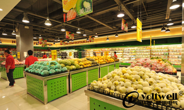 在超市里,光的作用是吸引客戶,顧客的注意力更加容易被光效氣氛好的區域所吸引。精心設計的照明可以為顧客創造一種舒適愉悅的氣氛,從而使顧客產生極為舒適的心情。貨物區有效的照明主要是使客戶感到舒適從而愿意繼續光臨。獨到新穎的燈具設計更加突出了內部的設計,同時也加深了整體照明印象。