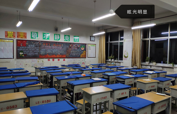 其實這是因為目前大多數傳統教室照明燈具廣泛應用直露式熒光燈,也就是燈管是外露在燈罩外,燈管前面沒有阻隔,護眼燈光線直接照射在學生的眼睛。燈光感到刺眼和頭暈都是因為熒光燈管對眼睛有著裸光眩光、頻閃、藍光等視覺損傷問題,其中眩光就是我們感到刺眼的原因。