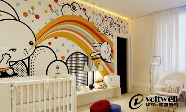 嬰兒房里的光源,要保證所有燈表面都是低亮度的,或讓光照到墻上、天花板上或其他物體表面再反射。晚上或夜里,如非特殊需要,最好不開嬰兒房里的燈,而是開旁邊其他房間的燈。
