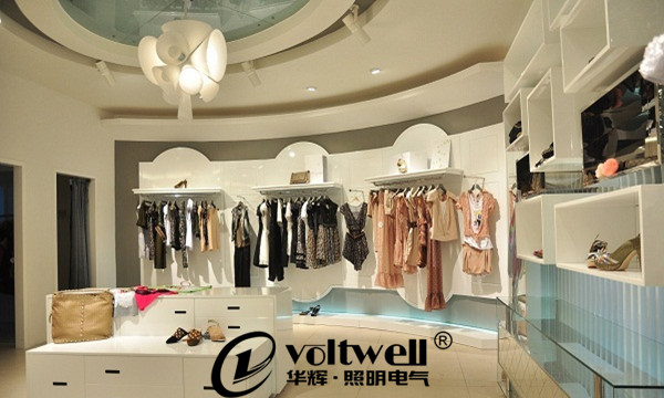 針對服裝店照明方式可選擇嵌入式、軌道式、明裝式LED照明燈具。反射式照明宜采用日光燈。目前LED燈具規格種類繁多,在商業照明中頗有新意,在服裝店中應用很廣泛,效果十分令人滿意。