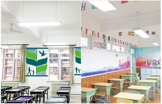 目前有很多學校仍采用的是熒光燈管或普通led燈管作為教室照明燈具,燈光刺眼、頻閃嚴重,顯色差,照度及照度均勻度均達不到國家標準要求,極易誘發學生近視。