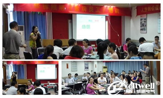 此次課程由華輝照明美貌與智慧并存的戴總親自主持,“各位在座華輝家人們的晚上好”, “好!很好!非常好!越來越好!”,各位華輝家人的回答鏗鏘有力,字字落地有聲。
