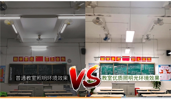 華輝教育照明自主研發(fā)的LED護(hù)眼護(hù)眼燈和LED護(hù)眼黑板燈。在教室照明改造中,教室照明區(qū)域安裝9盞華輝教育照明研發(fā)生產(chǎn)的LED護(hù)眼教室燈,實(shí)現(xiàn)普通教室的均勻照明,擁有無頻閃、無藍(lán)光、無眩光等特點(diǎn),采用全光譜光源,接近自然光,整個(gè)教室光環(huán)境護(hù)眼舒適,更利于學(xué)生學(xué)習(xí)。